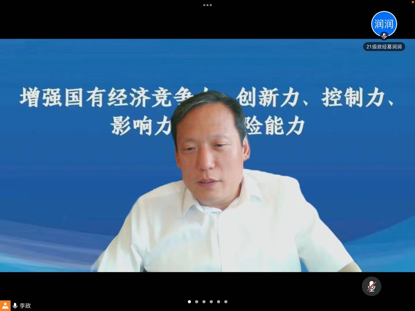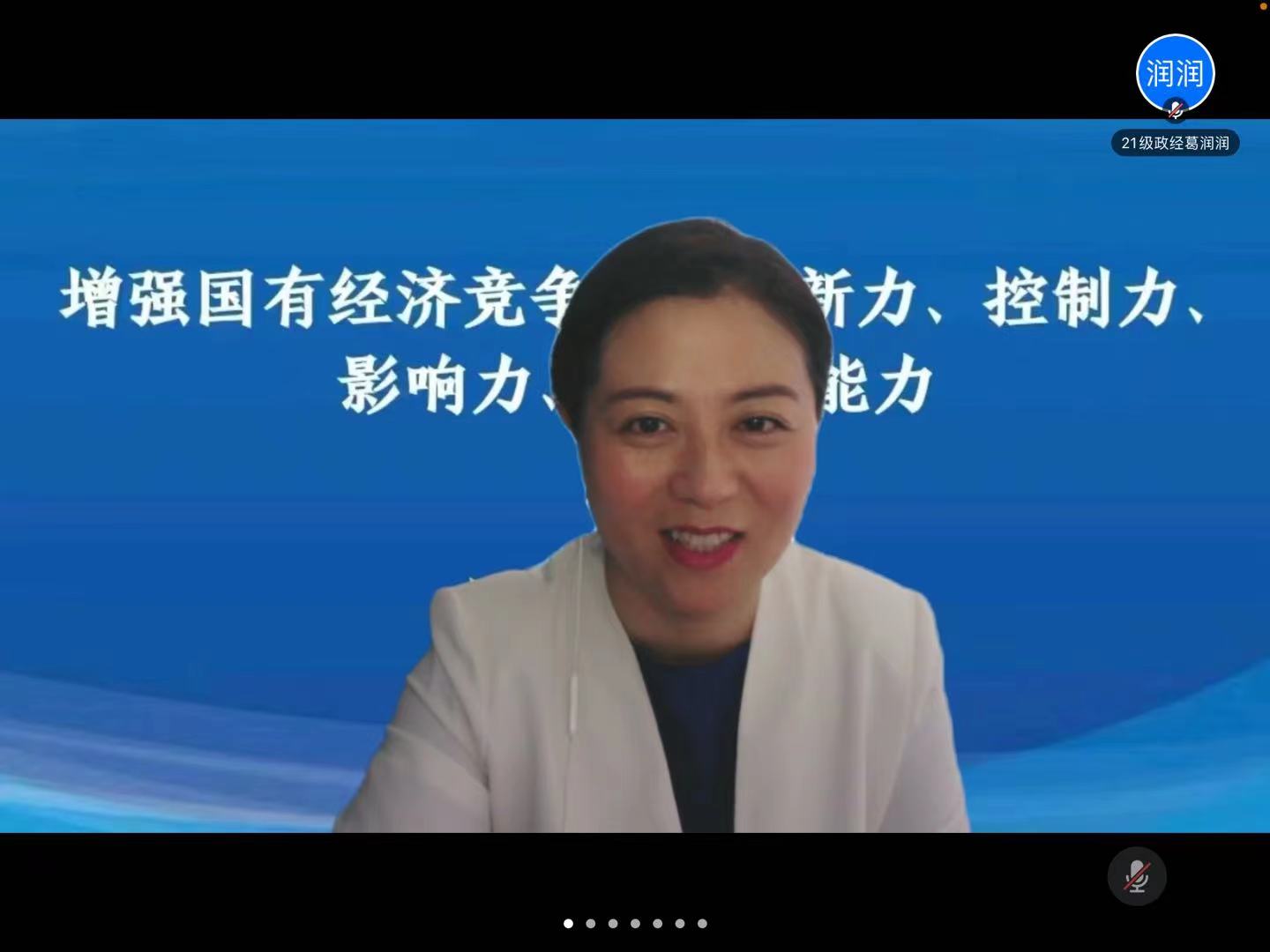 报告会上,周丽莎老师从2020年以来国家重要文件和中央会议精神关于国有企业竞争力、创新力、控制力、影响力、抗风险能力的重要论述出发,对如何多角度准确地把握国有企业发展脉搏,推动国有企业改革取得五方面实效进行了全面深入的阐述。在此基础上,周老师以国有企业应担当的社会责任为切入点,详细回顾了中国国有企业做优做强做大的光辉历史,进而联系习近平总书记在中央财经委员会第七次会议上的讲话,强调指出,应关注中国长期经济社会发展战略若干重大问题,不断推动经济优化和稳定产业链、供应链,进一步增强国有企业控制力和现代化水平。在向第二个百年奋斗目标迈进的关键时期,共同富裕是社会主义的本质要求,提高国有企业影响力,在高质量发展中促进共同富裕,使全体人民朝着共同富裕目标扎实迈进。最后,周老师强调指出,坚持问题导向,防止国有资产流失,立足机制制度创新,强化社会监督,把握中央政策和会议精神,才能推进国有企业改革,推动国有资本做强做优做大。会后,受到启发和鼓舞的与会师生与周老师进行了广泛深入的交流和探讨。