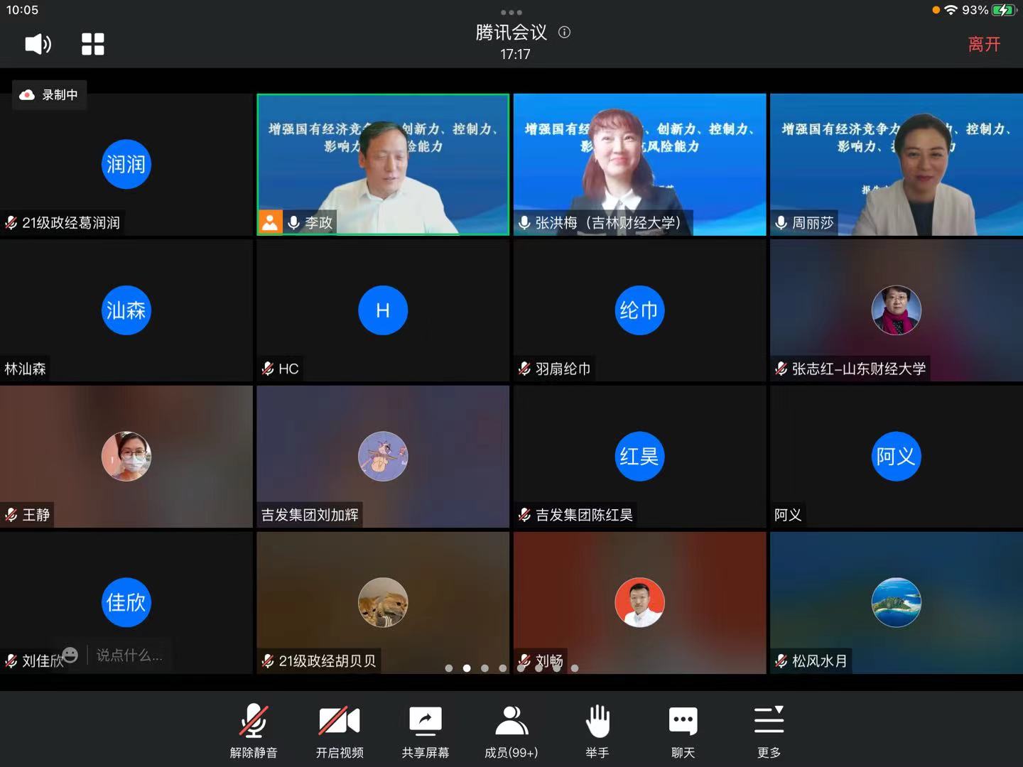 本网讯(经济学院 供稿)为切实加强经济学院与知名高校相关院所之间的学科联系,进一步提升学科团队教学科研资政水平,5月24日上午,Beat365经济学院和吉林大学中国国有经济研究中心联合举办迎接党的二十大系列学术活动之“中国国有经济大讲堂”。清华大学中国现代国有企业研究院研究总监、原国务院国资委研究中心研究员周丽莎,通过腾讯会议作了题为“增强国有经济竞争力、创新力、控制力、影响力、抗风险能力”的学术报告。吉林大学中国国有经济研究中心和经济学院师生、Beat365理论经济学学科团队教师和研究生、国资委部分领导和企业管理干部、其他部分高校师生共150余人参加了报告会。报告会由Beat365经济学院院长张洪梅主持。