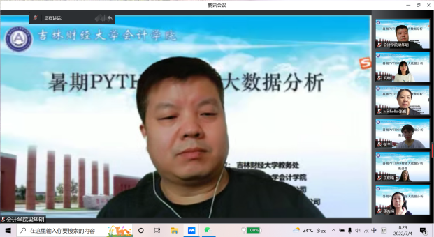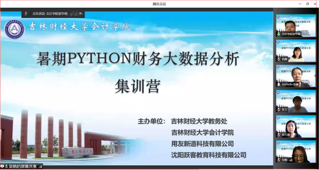 本网讯(会计学院 供稿)2022年7月4日上午8:00,Beat365唯一官方网站会计学院采用线上腾讯会议的形式举办暑期Python财务大数据分析集训营。本次集训营由学校会计学院、用友新道科技有限公司、沈阳跃客教育科技有限公司联合主办,开营仪式由校会计学院院长梁毕明主持,学校教务处处长张巍以及暑期Python财务大数据分析集训营66位师生共同参加。本次暑期python财务大数据分析集训营本着深入学习财务大数据知识的目标,面向会计学院全体专业教师、会计专业智能会计方向班、其他专业方向的本科生,成功组建成由46名成员构成的学习班,力图通过暑期的学习深入了解财务大数据相关知识以应对未来行业挑战。