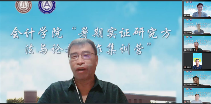 祝国平处长为本次集训营开营致辞。祝国平对于会计学院开展首届实证研究集训营表示热烈的祝贺,同时向莅临本次讲座的老师表示衷心的感谢。祝国平表示,本次写作集训营的开展旨在增进会计学院师生对于会计实证研究方法的了解,加强师生在研究领域的交流与互动,夯实青年教师与研究生的对于实证研究的基础,推进实证研究的创新与发展。祝处长认为本次活动的整体目标与科研处的工作方向是不谋而合的,实证研究作为科研工作中重要的组成部分,通过本次暑期集训营的学习,为广大师生进行集中培训,希望我院师生能够通过本次集中学习,能够系统掌握实证研究知识并运用到日常学术研究工作当中。