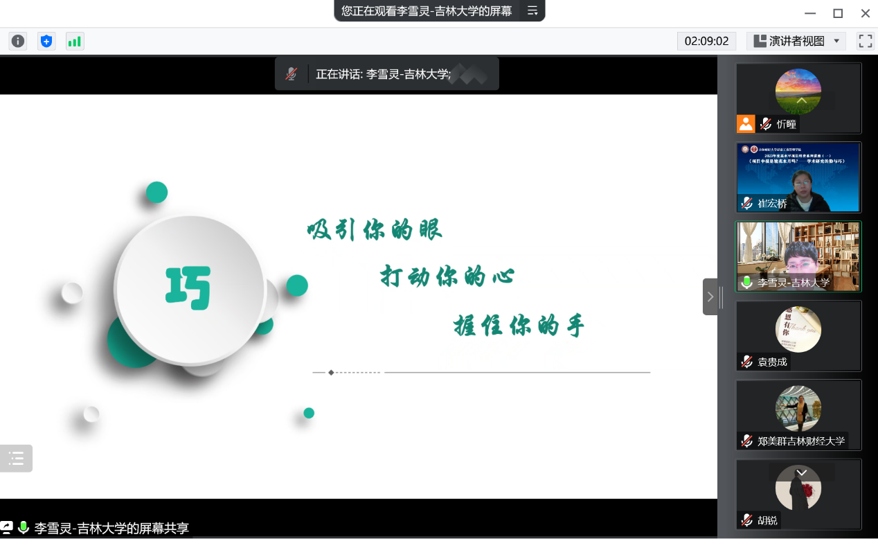 报告会上,李雪灵教授从理论和实践两个维度,基于申报者和评审者的双重视角,从项目申报类型、选题、内容以及论证等方面为参会师生描绘了一幅项目申报的系统工程图。李教授以夯实厚重的学术研究工作为基础,通过生动的选题案例分享为参会师生提供了前沿课题研究方向与目标。她鼓励教师在项目申报的过程中要保持研究热情、汲取养分、总结经验、开拓选题思路、把握前沿、追踪热点,做好科研积累,相信必将实现质的突破。李雪灵教授的无私分享与专业指导,极大提升了参会教师申报“两金”项目的信心。