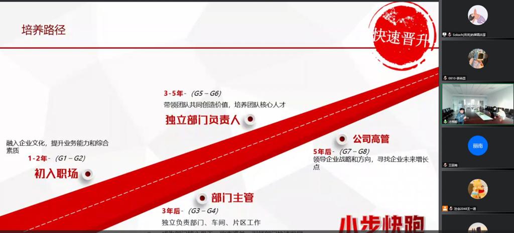 本网讯(会计学院 供稿)为全面深化和推进校企合作,为学生开辟更多就业创业岗位,促进毕业生高质量就业,11月23日下午,会计学院与吉林梅花集团公司联合开展访企拓岗云端交流宣讲会。学院党委院副书记徐克哲、副院长王丽南、毕业班辅导员,吉林梅花集团公司财务经理于海岩、财务处长路正楠、人力处长车春兴、计划调度主管修丹媚、采购内勤主管蒋丽、校招负责人才伟婷,会计学院大三、大四部分学生参加了宣讲会。宣讲会由学院副院长王丽南主持。