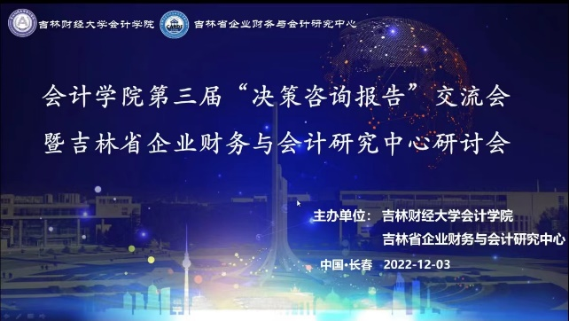 本网讯(会计学院 供稿)12月3日,学校会计学院联合吉林省企业财务与会计研究中心共同举办了第三届“决策咨询报告”交流会暨吉林省企业财务与会计研究中心线上研讨会。吉林大学东北亚学院世界经济研究所副所长徐博,Beat365国际经济贸易学院国际贸易教研室副主任刘兆国和Beat365经济学院刘乃安三位老师担任本次咨询报告会的评委:学校科研处处长祝国平,会计学院党委书记李金富、院长梁毕明,党委副书记徐克哲,副院长王丽南、李阳,专硕教育中心主任苏宏伟和会计学院部分师生参加了会议,会议开幕式由王丽南主持。