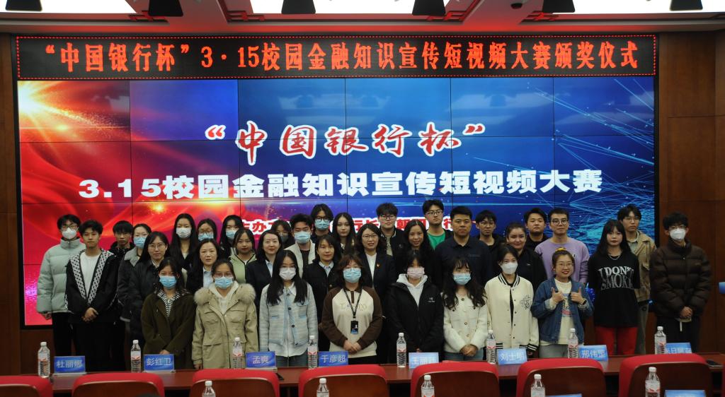 本网讯(金融学院 供稿)3月20号,为进一步提升大学生群体的金融素养和风险防范意识,树立正确的消费观念和财富管理观念,有效识别校园贷、电信诈骗等社会风险陷阱,金融学院与中国银行长春朝阳支行联合举办了3·15 校园金融知识宣传短视频大赛。中国银行长春朝阳支行纪委委员于彦超、副行长孟爽,金融学院副院长王丽颖、党委副书记刘士明、金融学院部分师生参加了颁奖仪式。