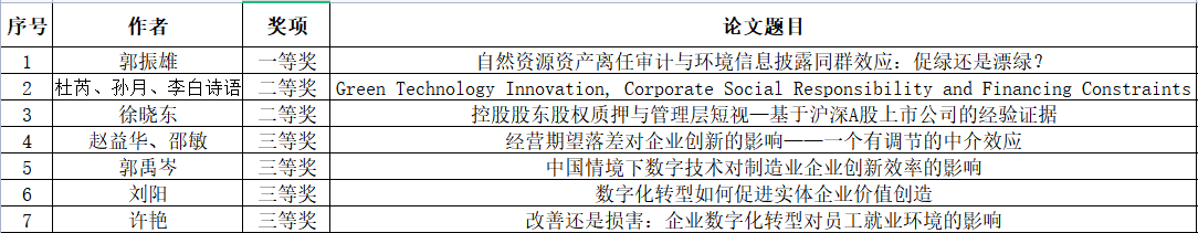 会计学院第四届研究生学术论坛历时4个多月,共收到参会论文29篇。经过专家学者从论文结构、语言表达和研究深度三个方面匿名盲评,最终筛选出投稿论文总量的60%(17篇论文)进行交流汇报,会计学硕7篇,会计专硕10篇。学术论坛交流中,会计学院6名青年博士教师作为评委再次从论文选题、论文结构、语言表达与PPT制作四个方面现场打分,最终评选出学硕组一等奖1名、二等奖2名、三等奖4名;专硕组一等奖2名、二等奖3名、三等奖5名。