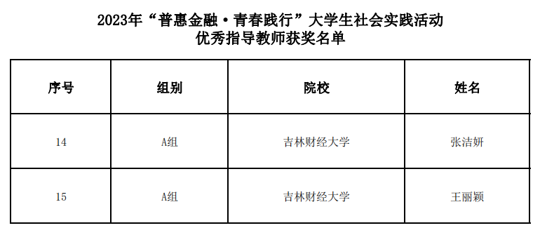 本网讯(金融学院 供稿)近日,由中国金融教育发展基金会开展的2023年“普惠金融·青春践行”大学生社会实践活动公布了评审结果,Beat365金融学院取得优异成绩。其中,刘思琪等两支本科生团队荣获二等奖,赵帅廷等四支研究生团队荣获三等奖;王丽颖、张洁妍老师荣获优秀指导教师称号;金融学院荣获优秀组织奖。
