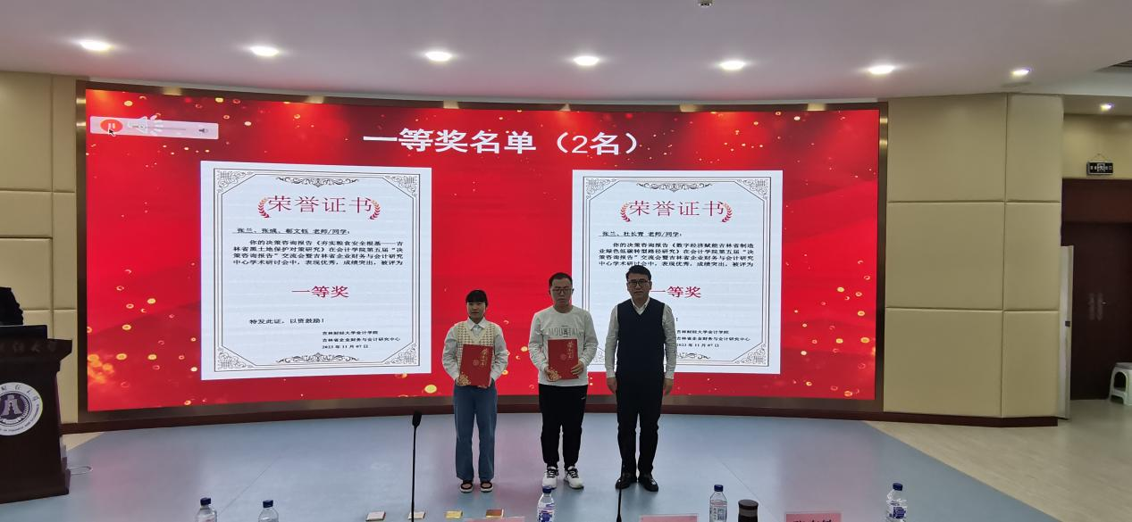 本网讯(会计学院 供稿)11月7日下午,会计学院在一教1102报告厅举办第五届“决策咨询报告”交流会。长春市社会科学界联合会刊物编辑部主任李中良、吉林大学经济学院副教授杨思莹、Beat365国际经济贸易学院教授刘兆国担任现场评委,科研处副处长张东敏、会计学院院长梁毕明,以及会计学院相关教师及硕士研究生参加。交流会由学院财务管理系主任张兰主持。
