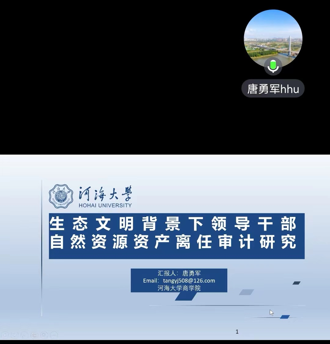 本网讯(会计学院 供稿)12月8日,会计学院以线上会议的形式举办2024年“两金”项目申报辅导系列——绩效审计研究专题讲座,本次讲座邀请河海大学商学院副教授唐勇军和浙江工商大学会计学院教授黄溶冰分别主讲。会计学院院长梁毕明、部分教师及硕士研究生等参加学习。本次讲座由审计系主任吴昊洋主持。