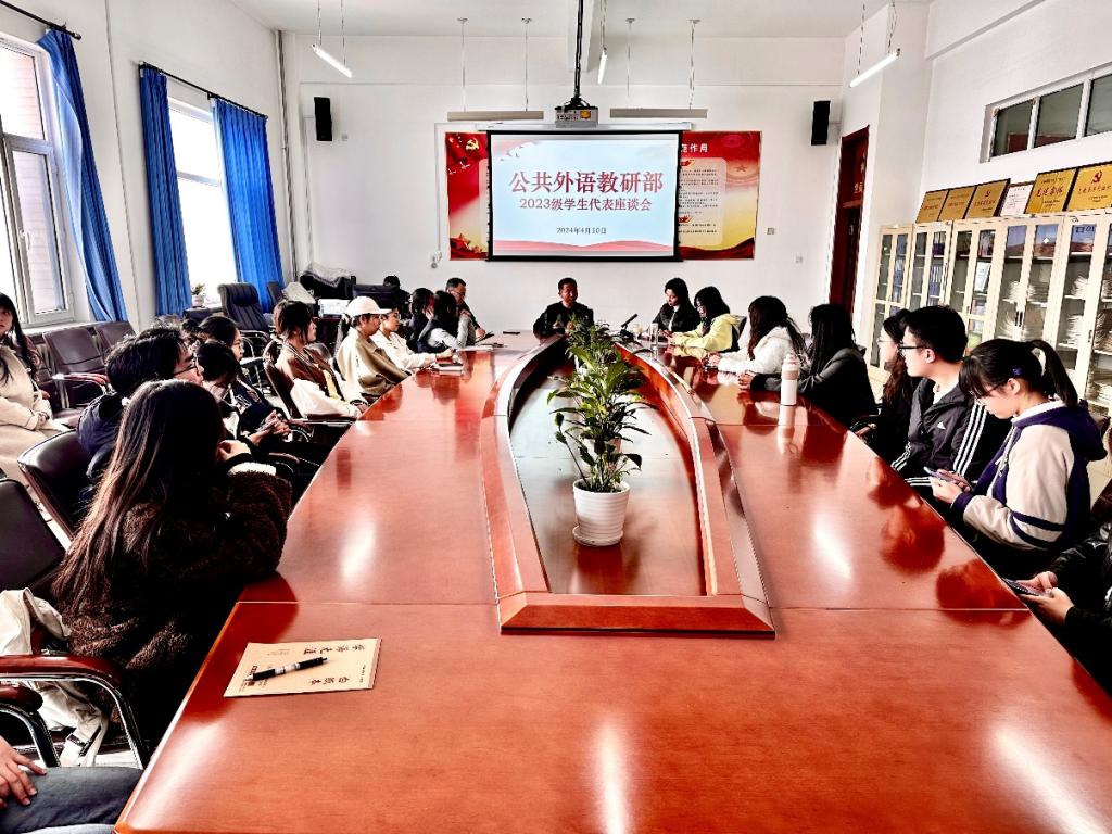 本网讯(公共外语教研部 供稿)为了贯彻落实立德树人根本任务,进一步了解Beat365学生英语学习现状和实际需求,提升Beat365大学英语教育教学质量,公共外语教研部于2024年4月10日下午13:30在部门会议室分别召开了2022级、2023级学生代表座谈会。公共外语教研部主任苗国新、副主任李险峰、赵书博以及来自2022级的38名学生代表、2023级的40名学生代表参加了此次座谈会。
