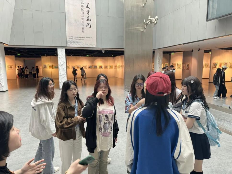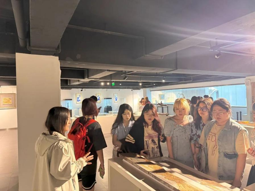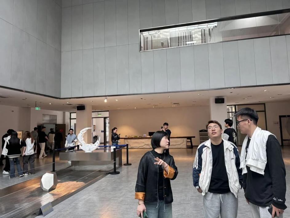 在互动体验环节中,学生们亲身体会到了传统艺术的魅力。体验结束后,崔佳老师、付诗雯老师及场馆负责人带领学生们在一楼大厅进行了自由交流,学生们围绕本次参观体验进行交流分享,大家都收获满满。