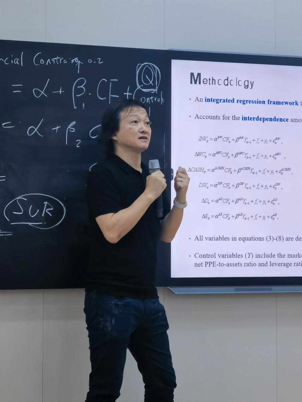 常鑫教授深入剖析了企业现金流的六种主要用途,并揭示它们对现金流敏感性的时间趋势。本次报告不仅内容前沿,同时也展现了高水平学术论文的写作框架和研究范式。报告结束后,常鑫教授与学院师生展开了热烈的交流与讨论,耐心细致地解答了师生们提出的问题。