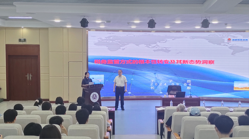税务学院教师及研究生参加了报告会。报告会由税务学院院长张巍主持。(审核人 张巍)
