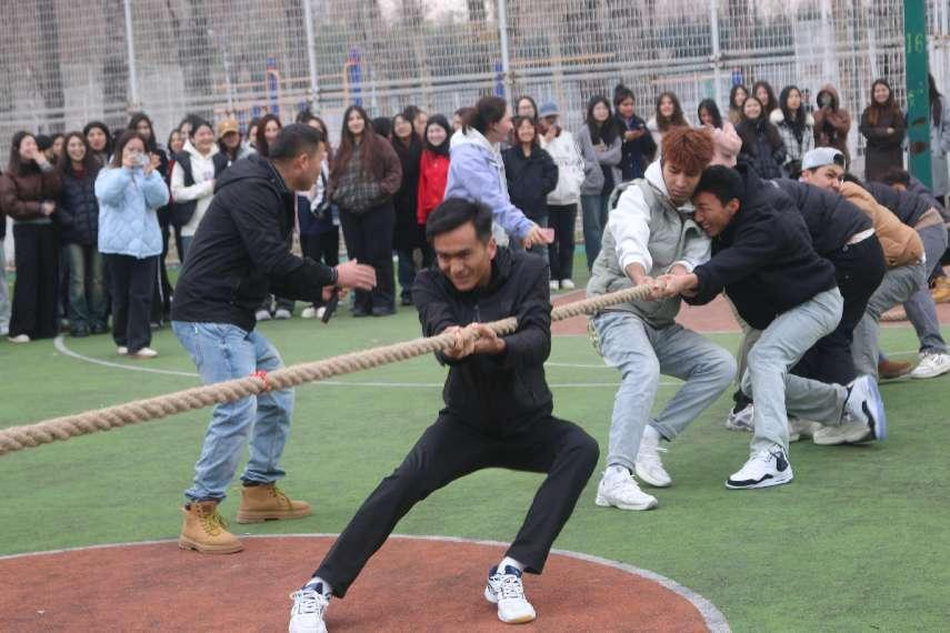 “拔河比赛”更是将现场气氛推向了高潮,各民族同学齐心协力,为了团队荣誉而奋力拼搏;
