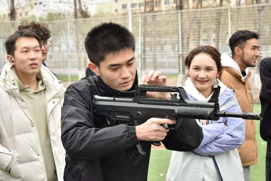 在个人项目中,95式激光自动步枪模拟射击比赛格外吸睛,参赛报名人数众多。与真实射击相比,模拟射击具有更高的安全性,同时,也能够让同学们了解武器装备等方面的知识,使同学们更加直观地感受军事文化的魅力,增强对国防建设重要性的认识。