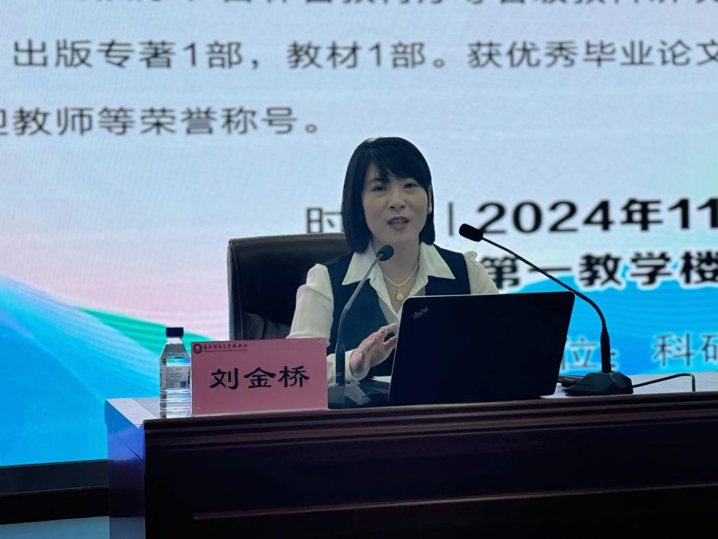 本网讯(科研处 供稿)为营造浓厚的学术氛围,增进学术交流,拓展学术视野,11月13日下午,科研处联合国际交流学院在第一教学楼1102报告厅举办了“吉财善水讲坛”第二十二讲学术活动,邀请国际交流学院刘金桥副教授做了题为“东北老工业基地教育代际流动、贫富差距与生育意愿关系的实证研究”学术报告。本次报告会由国际交流学院副院长李舸主持,国际交流学院全体教师和部分学生代表参会。