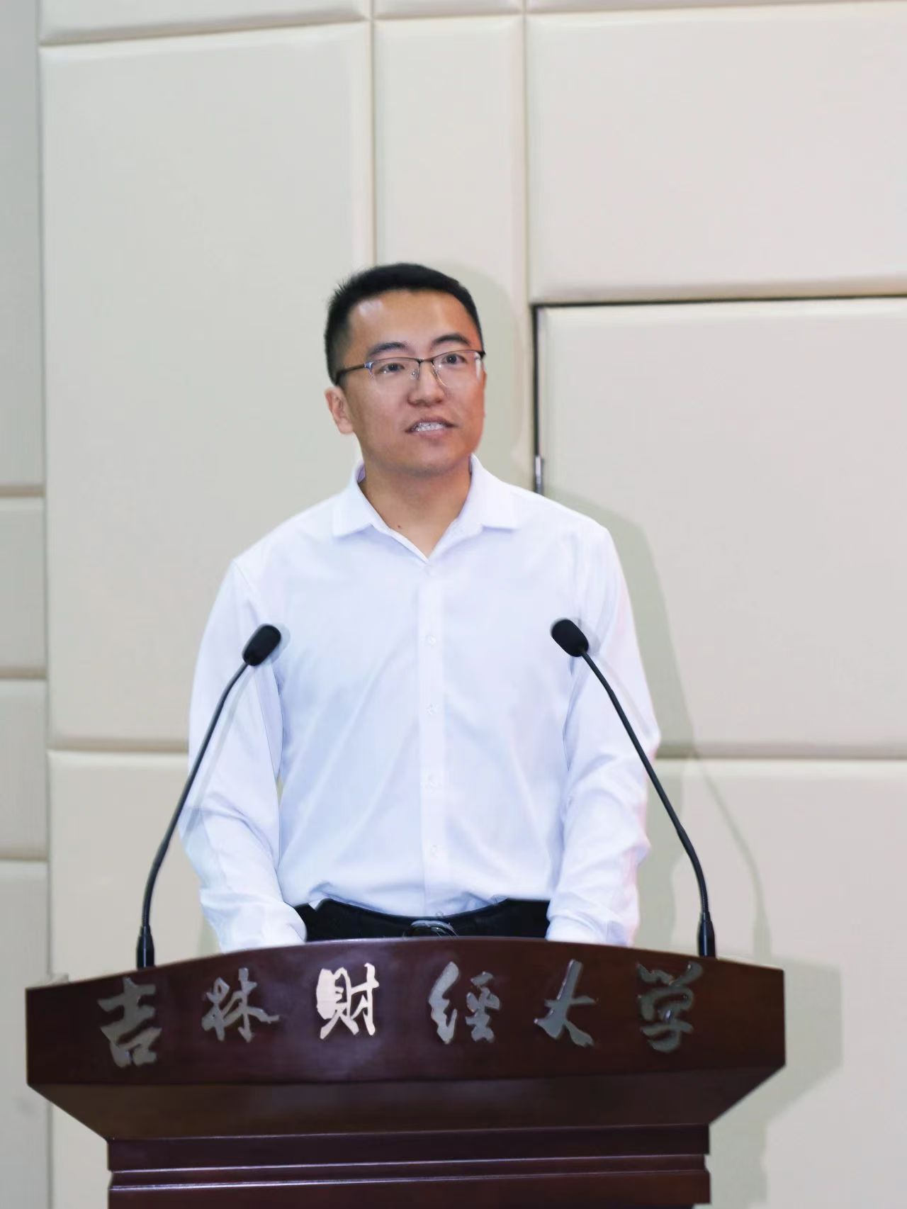 最后,新一届MBA联合会主席徐嘉成代表发言。他首先对学校和学院的信任与支持表示感谢,同时表示将带领MBA联合会全体成员积极履行职责,架起桥梁和纽带,倾听同学们的心声与需求,联合开展丰富多彩的学术交流、文体娱乐、公益事业、涉外联络等活动,加强与其他高校 MBA 联合会以及企业、社会组织的交流与合作,为同学们拓展更广阔的外部资源与发展空间,提升吉财MBA 品牌的影响力与知名度。