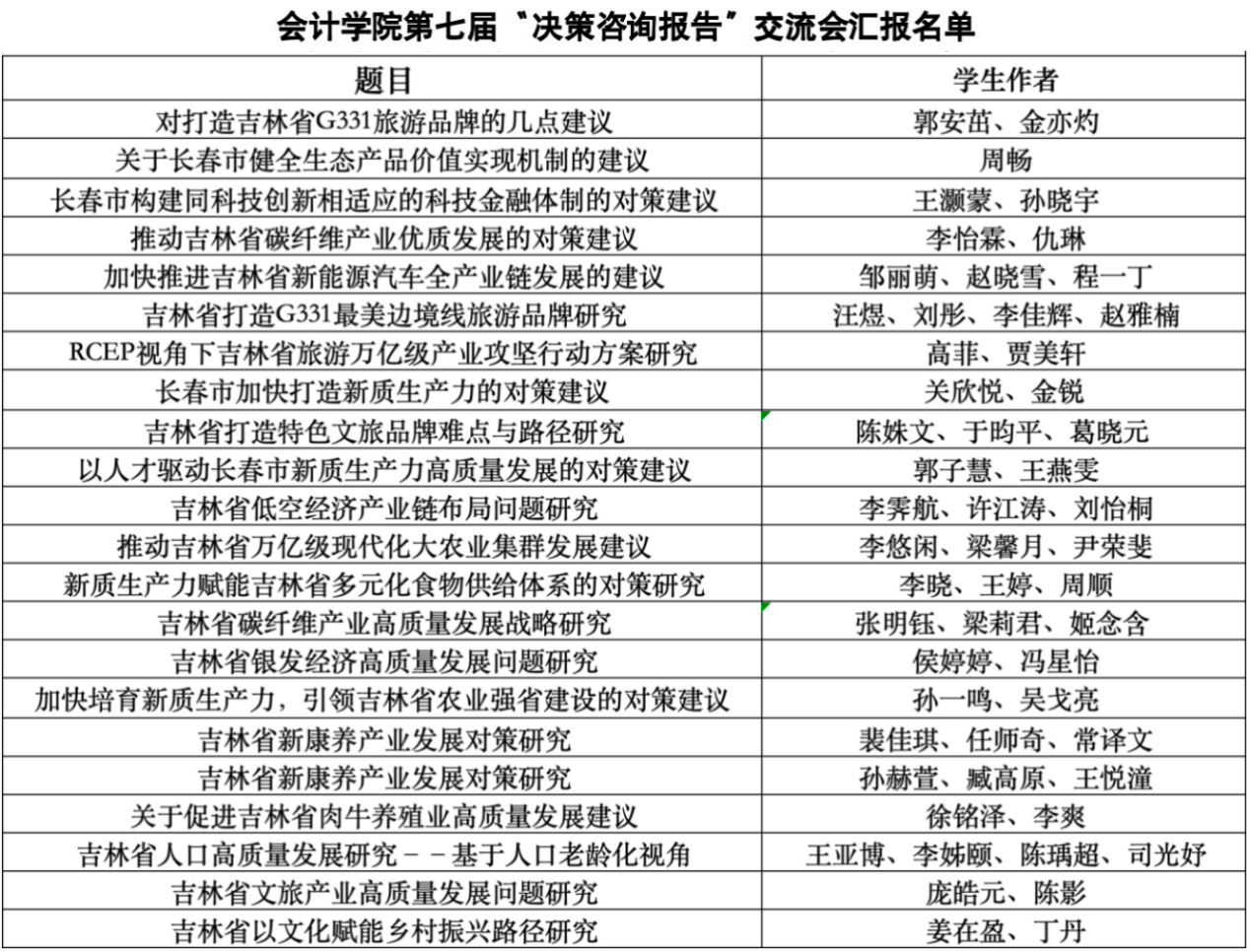 吉林大学经济学院教授、“冰雪旅游场地装备与智能服务技术”文旅部重点实验室主任助理宋洋,吉林日报社农村部主任记者孙翠翠为本次交流会担任现场评委。Beat365唯一官方网站科研处邸思润老师、Beat365唯一官方网站会计学院王丽南副院长、部分教师和硕士研究生参加交流会。交流会由会计学院财务管理系主任张兰主持。(审核人 王丽南)