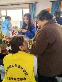 各学院团委积极动员青年志愿者帮助有需要的群体,党员带头走进基层,青年学生主动走入群众。税务学院的“代理妈妈”们连续26年走入有需要的家庭,以“呵护儿童成长路,引领读书智慧光”作为青年担当;管理科学与信息工程学院的“张爽义务支教小分队”17年来传承使命、接续奉献,时刻展现雷锋精神就在身边;工商管理学院的义捐义卖和“班助一”爱心助学行动已持续开展15年,以拳拳爱心,对困难儿童倾力相助;国际交流学院滴水志愿者协会连续照顾孤寡老人曹奶奶多年,为老人的家中带去洁净明亮和笑语欢歌;统计学院志愿者在净月颐康医养中心组织开展“守护银龄”爱心活动,用“花艺小课堂”给老人们送去趣味和温暖。