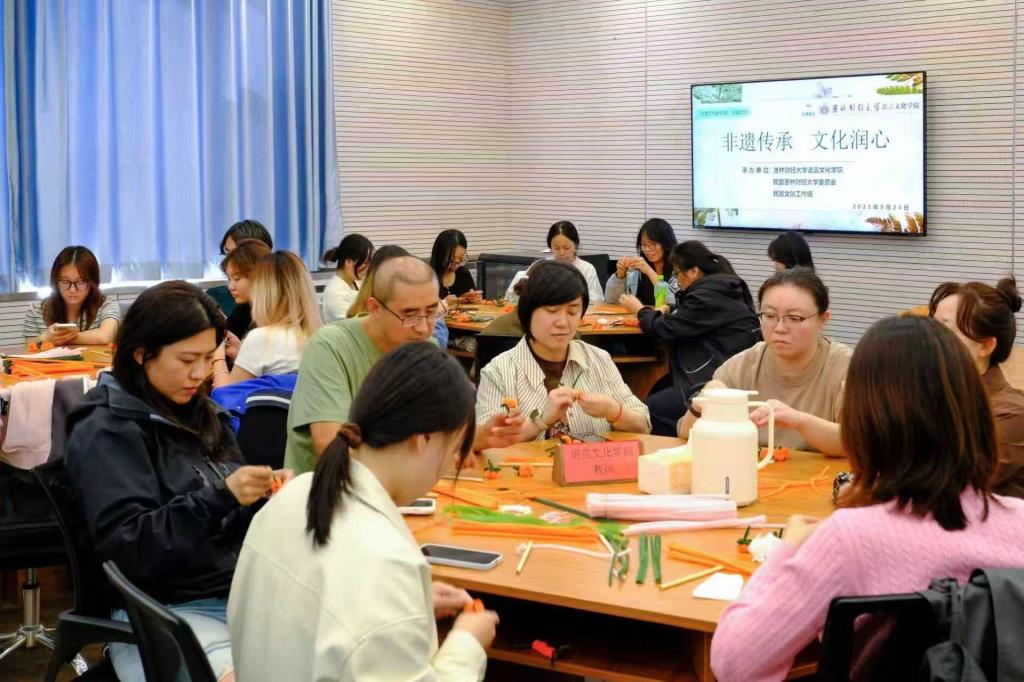 本网讯(语言文化学院 供稿)9月24日,语言文化学院联合民盟Beat365唯一官方网站委员会、民盟文创工作组共同开展“非遗传承 文化润心”非遗文化进校园主题活动,以沉浸式体验将非遗技艺的“匠心之美”与高校育人“培根铸魂”的核心目标深度融合。