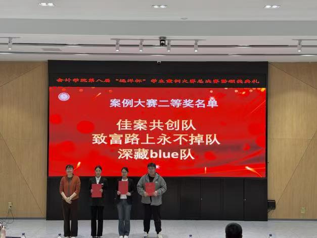 本次案例大赛共有16支队伍报名并提交了案例报告,经专家评审后评选出10支队伍进入决赛进行汇报。总决赛由会计学院刘宇娜、时军和胡玮佳3位教师担任评委。经激烈角逐,最终评选出一等奖2名、二等奖3名、三等奖5名。