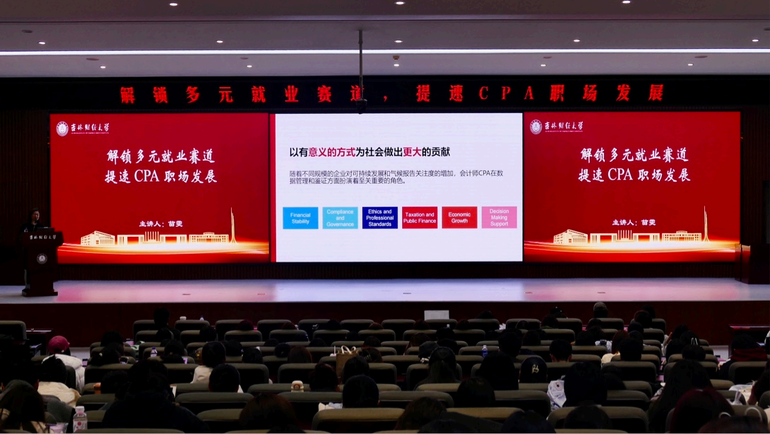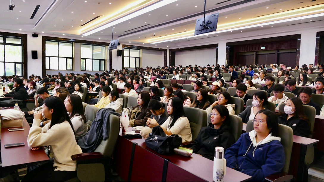 2025级会计学院研究生、会计专业和审计专业本科生参与讲座,讲座由专业硕士教育中心主任邵方婧主持。