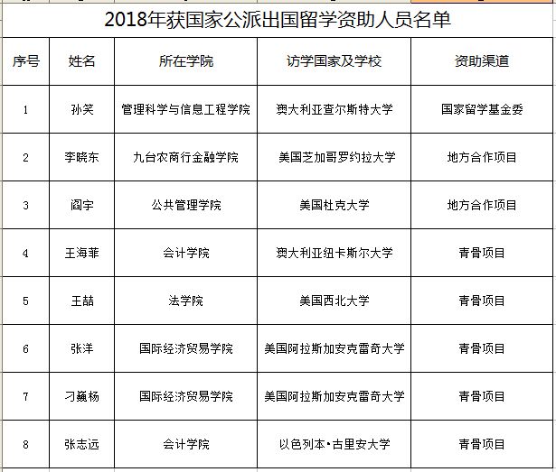 近年来,学校高度重视师资队伍国际化建设,积极拓宽教师出国研修渠道。2018年在原有渠道基础上,学校拨出专项资金与国家留学基金委合作,启动实施了“青骨项目”派出计划。该计划预计实施五年,每年派出10人,今年是首次选派。学校于今年3月和9月先后两次开展了项目申报和评审工作。经过个人申请、院系推荐、专家评审等环节,学校向国家留学基金委推荐申报人选8人,最终5人顺利通过评审。目前获得资助的部分教师已陆续赴国外访学进修。