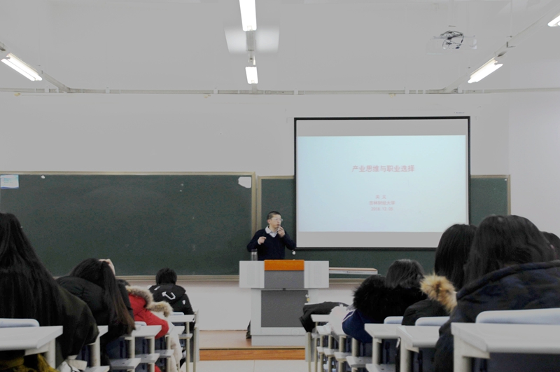 本网讯(亚泰工商管理学院 供稿)为提高人才培养质量、促进毕业生顺利就业,12月5日,亚泰工商管理学院特邀关义教授在第一教学楼1303教室作了关于职业选择思考的讲座。关义教授是国内产业分析和战略、商业模式创新专家,北京多家创业园创业导师。亚泰工商管理学院党委书记李福平、党委副书记蒋武鹏、教学副院长卞志刚等参加了本次讲座。