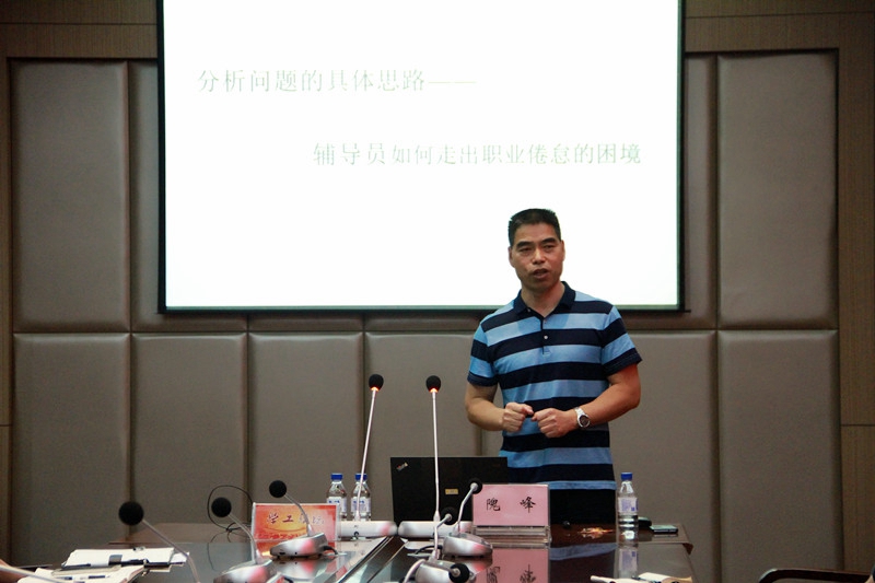 本次讲坛由吉林省教育厅民族教育处副处长、新疆伊犁师范大学学生工作部部长、新疆内派服务管理教师吉林协调站站长隗峰教授主讲,题目为《分析问题的具体思路——辅导员如何走出职业倦怠》。