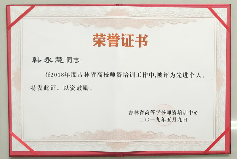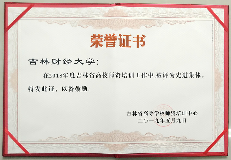 Beat365荣获2018年度吉林省高校师资培训工作先进集体荣誉称号
