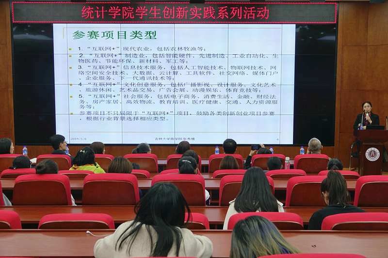 本网讯(统计学院 供稿)为全面落实习近平总书记给中国“互联网+”大学生创新创业大赛“青年红色筑梦之旅”大学生的重要回信精神,提高“互联网+”大学生创新创业大赛校赛项目质量,统计学院联合教务处于5月6日晚6:00在第一教学楼1202报告厅举办了“互联网+大学生创新创业大赛核心知识”主题讲座。