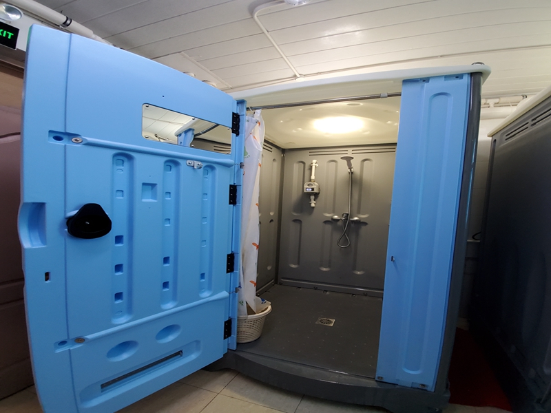 2.整体可移动独立浴房,本项目采用新型环保材料全塑设计,配备独立照明、排风、排水系统,保暖性好,内部设有挂钩及浴帘保证干湿分离,确保使用过程中的私密性和安全性。浴房整体可移动,可随时根据房间用途搬迁。