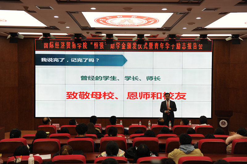 “恒强”助学金是国际经济贸易学院设立的第一项社会助学金。彰显了校友的敬校、爱校之情,在丰富学院层面助学金体系的同时,为家庭经济困难学生提供了进一步的学业支持。学院也将充分发挥“恒强”助学金在对家庭经济困难学生学业导向方面的积极作用,将帮扶与资助育人、学业提升紧密结合起来,深入推进学院的资助工作。(审核人 赵钺)