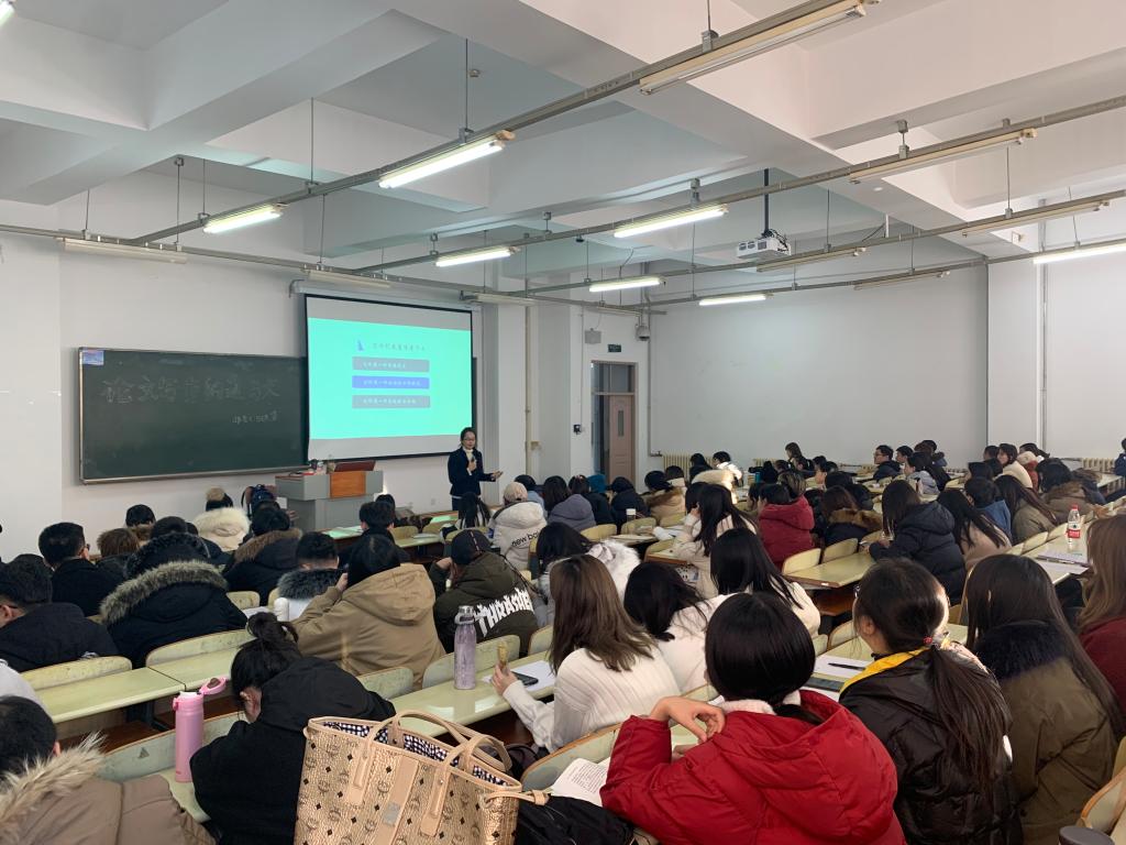 田洪鋆教授以“写作意味着什么”开始,从认识论、方法论两个层面对如何进行论文写作进行讲解。在认识论层面,田教授根据思维层次导图从写作的三个特性出发,以举例的形式将论文写作所需的判断性思维以及创新性思维清晰的展现出来。田洪鋆教授以其幽默的语言通过中英文解释强调论文基本文体——议论文形式,并利用基本的逻辑分析寻找理论支撑突出法律思维逻辑在论文写作中的重要性。随后,田教授以横纵两条线索对收集文献、资料整理、选题、论文提纲等方法论层面的写作步骤进行列举,细致讲解文献、摘要等的内容,对所讲解的各项内容都以实践中常见的错误写作予以警示。