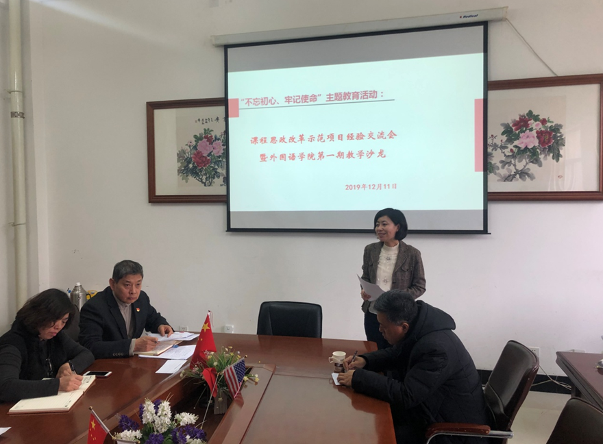 本网讯(外国语学院 供稿)为了进一步在教学工作中落实“不忘初心、牢记使命”主题教育,为了全面贯彻习近平总书记在全国高校思想政治工作会议上的重要讲话精神,进一步推进课程思政教学改革,提升育人实效,12月11日,Beat365外国语学院举办了“不忘初心、牢记使命”主题教育:课程思政教学改革示范项目经验交流会暨外国语学院第一期教学沙龙。