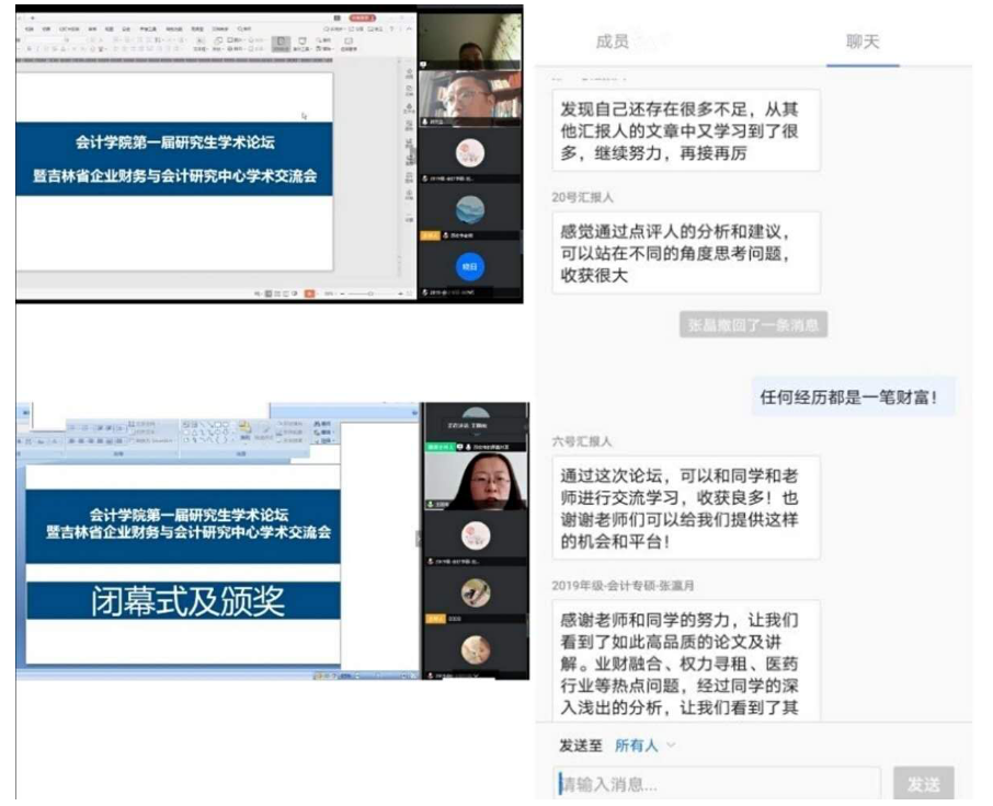 本网讯(会计学院 路曼 刘莉)4月25日8:30—16:00,会计学院师生疫情期间秉承着特殊时期师生学术科研不停歇的精神,以线上腾讯视频网络会议形式召开了会计学院第一届研究生学术论坛暨吉林省企业财务与会计研究中心学术交流会,本次学术研讨会的主要参会人员是Beat365唯一官方网站会计学院教师、研究生、科研菁华班成员和部分本科生,共计260余人参加。论坛开幕式由会计学院院长梁毕明主持。