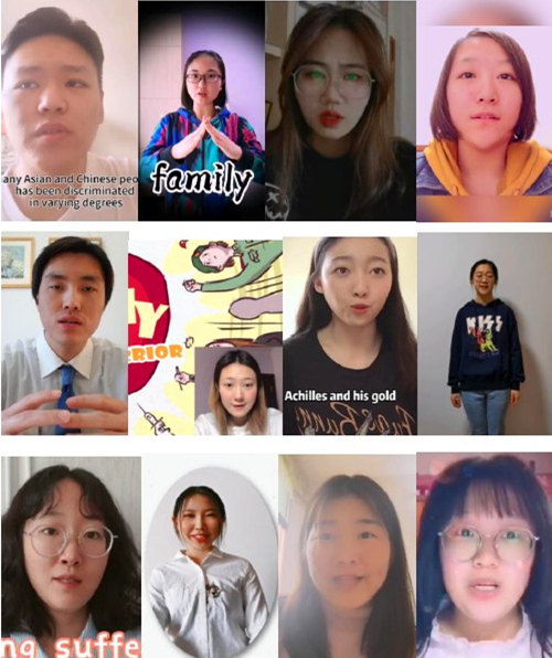 疫情之下的新学期“停课不停学”,师生通过网课隔空相见。2020年4月到5月间,课程组适时而动,举办了线上的“英语微视频”大赛。活动得到了同学们的积极响应,课程组收到了大量作品。同学们在居家环境中用手机或电脑录制短视频,用自己的声音为武汉加油,为中国加油!还有的同学隔空携手,以团队或班集体的方式参赛。作品以英文演讲、英语配音、英文歌曲等丰富多样的表现形式讴歌了工作在一线的抗疫人员,弘扬主旋律、传递正能量。最后,张晨阳、林婉滢等6位同学的作品得到评审老师们的一致好评,获得个人一等奖;另有7个优秀作品获评个人二等奖;13个作品获评个人三等奖;3个团体作品分获一、二、三等奖。