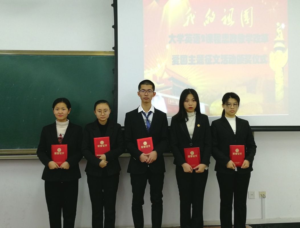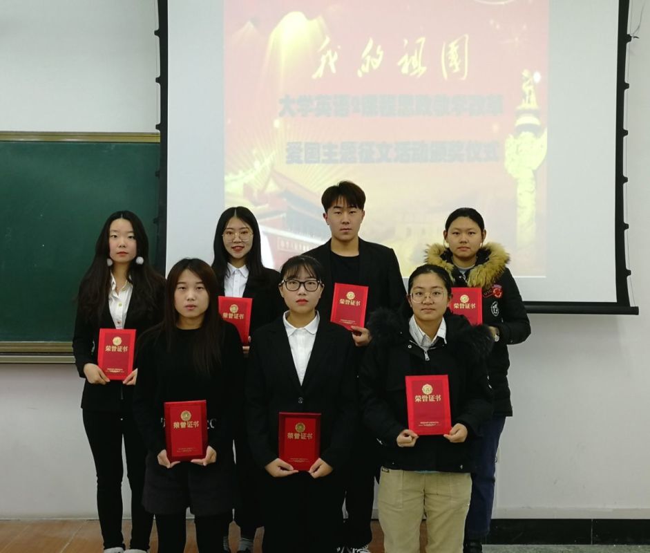 2019年是祖国70岁华诞,课题组依托批改网在2019年10月到12月间举办了“My Present for the 70th Birthday of My Country”《我为祖国70岁生日献礼》英语征文活动。活动得到了外语部全体教师的积极响应,在大一、大二两个年级中得到广泛的推广,课题组收到征文近千份。课题组采用机器阅卷与人工阅卷相结合的双评审模式,人工阅卷又采用了多人评阅取平均分的办法,最终评选出了一批文采飞扬、饱含深情的优秀爱国主题作品并给予了奖励。在众多选手中,崔涵、刘娴、肖池3位同学脱颖而出获得一等奖;王浩宴等5位同学获得二等奖;另有20位同学分别获得三等奖和优秀奖。征文活动大大提升了学生们的爱国意识和民族自豪感。