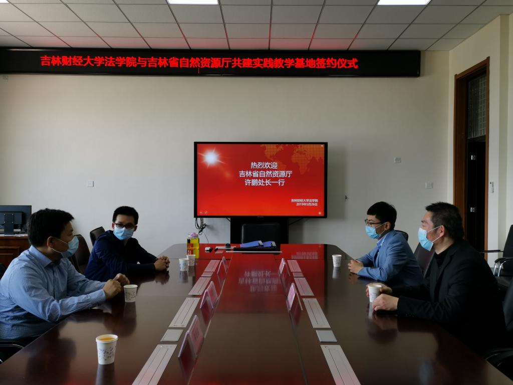 本网讯(法学院 供稿)为增强法学院发展的后劲和活力,拓宽学生视野,培养高素质技能型、创新型和理论型人才,5月26日上午,法学院与吉林省自然资源厅在法学院会议室正式举行共建实践教学基地签约仪式。吉林省自然资源厅法规处处长许鹏、法规处郑伟,Beat365法学院院长仇晓光、团委书记赖广添、学科秘书蒋雨露、青年教师宋泓宜参加了本次仪式。