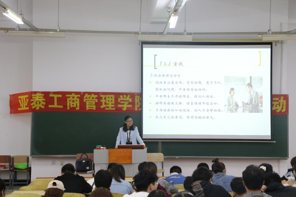 亚泰工商管理学院一直坚持开展学生就业指导工作,不断丰富学生职业生涯规划教育教学内容。此次职场礼仪讲座是2021届毕业生就业指导系列活动之一,旨在帮助毕业生了解职场礼仪规范,提升就业能力,实现进入职场后的华丽转身。(审核人 郑美群)