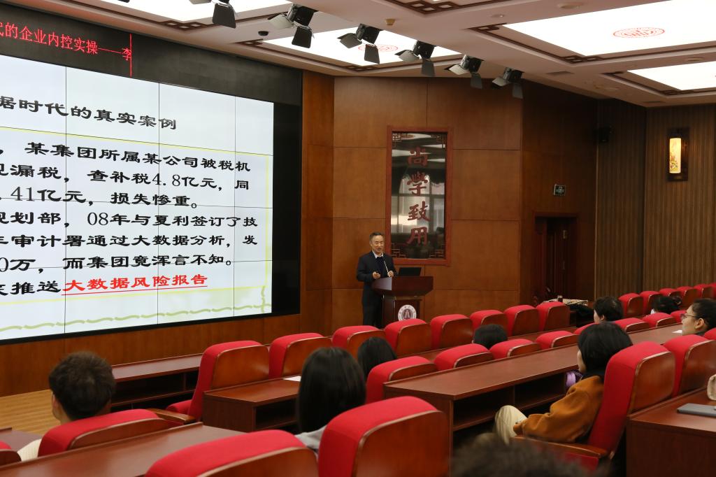 本网讯(会计学院 梁斯琦)10月29日上午8:30,会计学院邀请一汽集团高级财务顾问、会计学院特聘研究生实务导师李敬增,举行题目为:数据时代的企业内控实操”的实务专题讲座。会议地点在第一教学楼1202报告厅,全体2020级审计专业硕士研究生和部分会计学院教师、会计专业硕士研究生。会议由会计学院副院长王丽南主持。