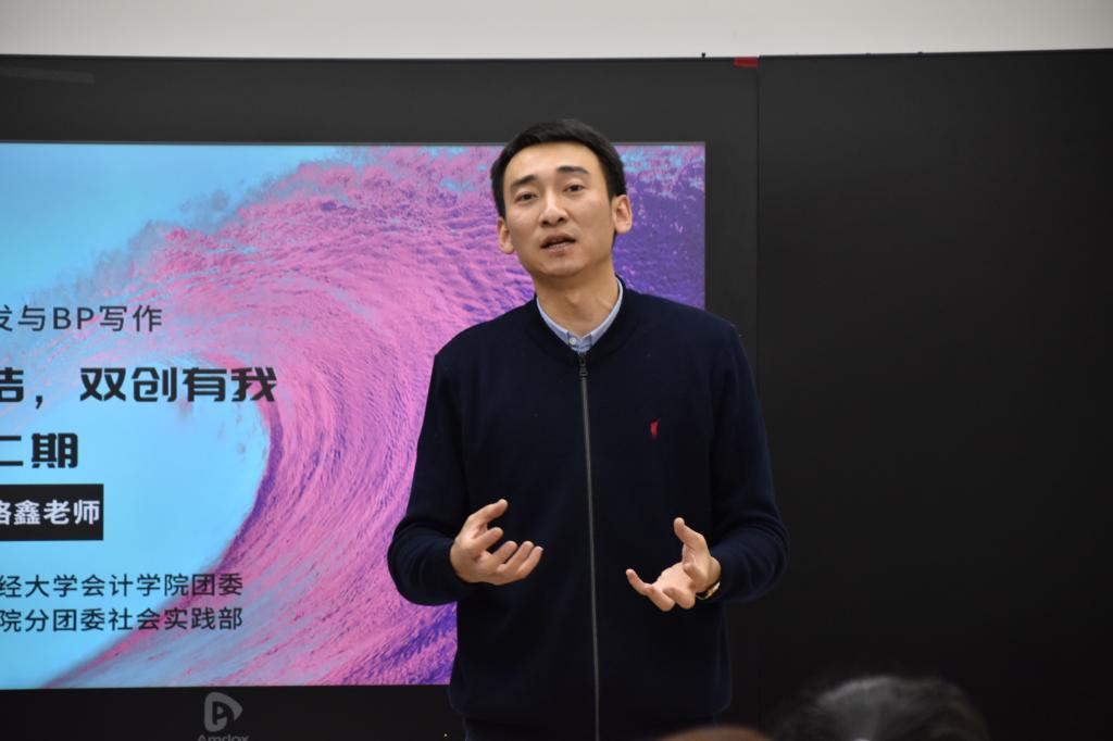本网讯(会计学院 供稿)会计学院为进一步落实立德树人的根本办学宗旨,激励会计学子刻苦学习、努力探索、积极进取、全面发展,决定举行“学长学姐有约”“旭日”校友系列分享会。为营造浓郁的创新创业教育环境,进一步培养会计学子的创新思维,激发创业热情。本期分享会与“会”速集结,双创有我专创融合训练营活动于11月19日晚18:00在一教1318联合举办。经济学院团委副书记骆鑫、会计学院2016届校友柴思宇、李双秀、会计学院团委书记王萌以及学院60余名同学参加了本次活动。