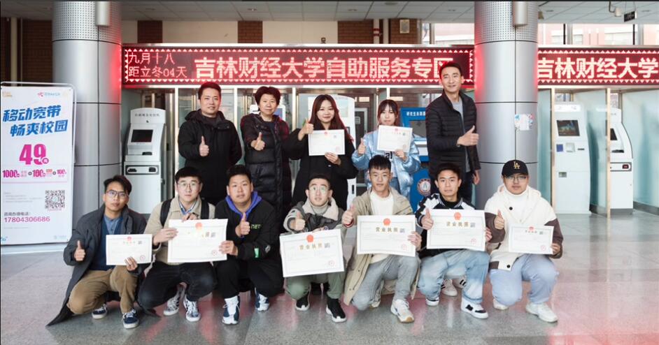 本网讯(国际经济贸易学院 供稿)11月3日,国际经济贸易学院四组创业学生,通过设置于实验楼一楼大厅的企业登记自助打照机,打印出属于他们自己的营业执照。这标志着国际经济贸易学院跨境电商创业孵化基地支持孵化的首批四家学生创办的企业正式成立运营。同时他们也成为孙杰光校长支持大学生创新创业,在校设置企业登记自助打照机以来的首批使用者。