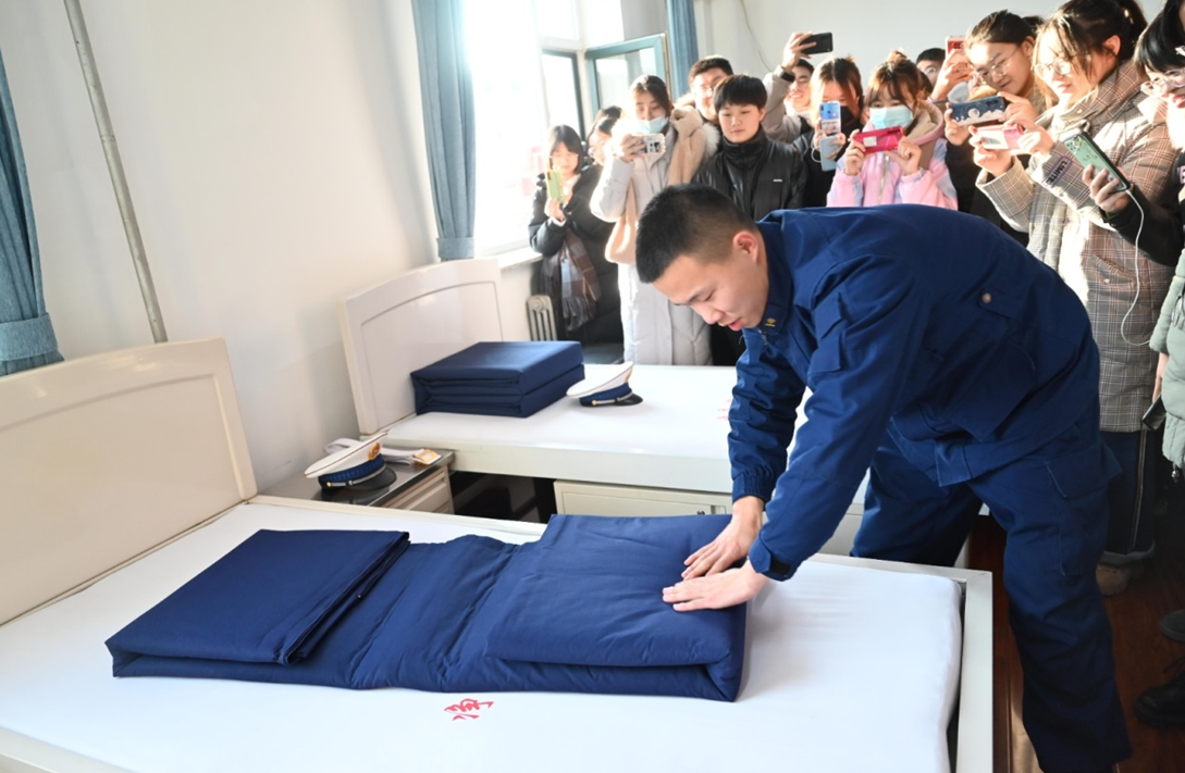 随后,同学们参观了消防指战员的学习和生活场所。干净的宿舍、整洁的床铺、规整的衣柜和方正的军被给同学们留下了深刻的印象。消防员同志还现场为同学们演示叠军被并进行耐心解答。