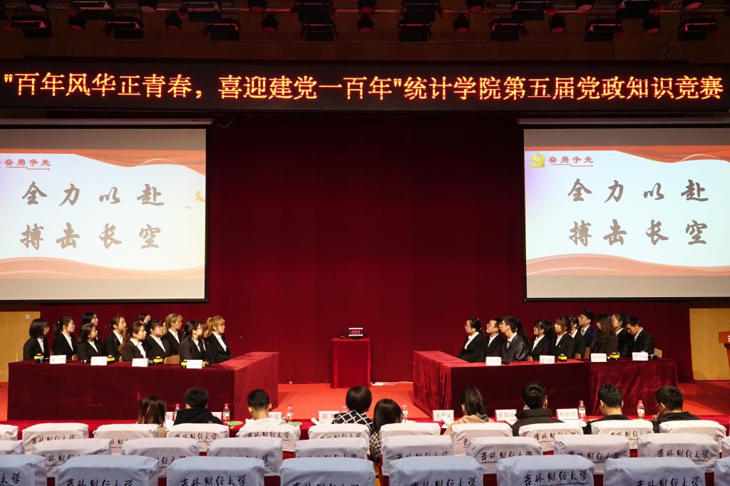 本网讯(统计学院 供稿)为庆祝中国共产党成立一百周年,更好的学习贯彻落实十九大精神,使广大学生更加深入理解和掌握习近平新时代中国特色社会主义思想、培养学生爱党爱国情怀,进一步统一思想认识,明确前进方向,统计学院于4月7日在图书馆报告厅举办“百年风华正青春,喜迎建党一百年”的党政知识竞赛。此次活动由统计学院学生党支部承办,统计学院学生党支部书记郭妍、支部委员刘思彤以及全体党员和积极分子出席本次活动。