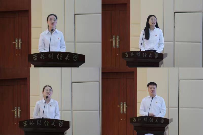 活动分为集体宣誓和红色故事分享两个环节。集体宣誓环节在党员师生集体高唱国歌中开始,学院党委专职组织员侯旭同志宣读了2021年上半年新发展党员名单;学院党委委员和教师党员共同为新发展党员代表发放《中国共产党章程》并佩戴党员党徽;学院党委书记赵彦双领誓,师生党员集体宣誓;学院党委委员、教工财政党支部书记孔薇代表老党员发言,表达了要牢记党员身份,铭记立德树人使命,始终在教学、科研等工作中发挥先锋模范作用,助力学生成长成才。并对新入党的学生做了叮咛,表达了期许;预备党员徐祥发代表新发展党员发言,表达了要牢记入党誓词,真正做到思想上入党、行动上入党、境界上入党、纪律上入党;集体宣誓环节在党员师生高唱国际歌中落下帷幕。
