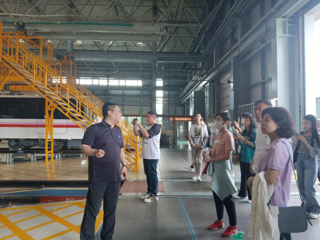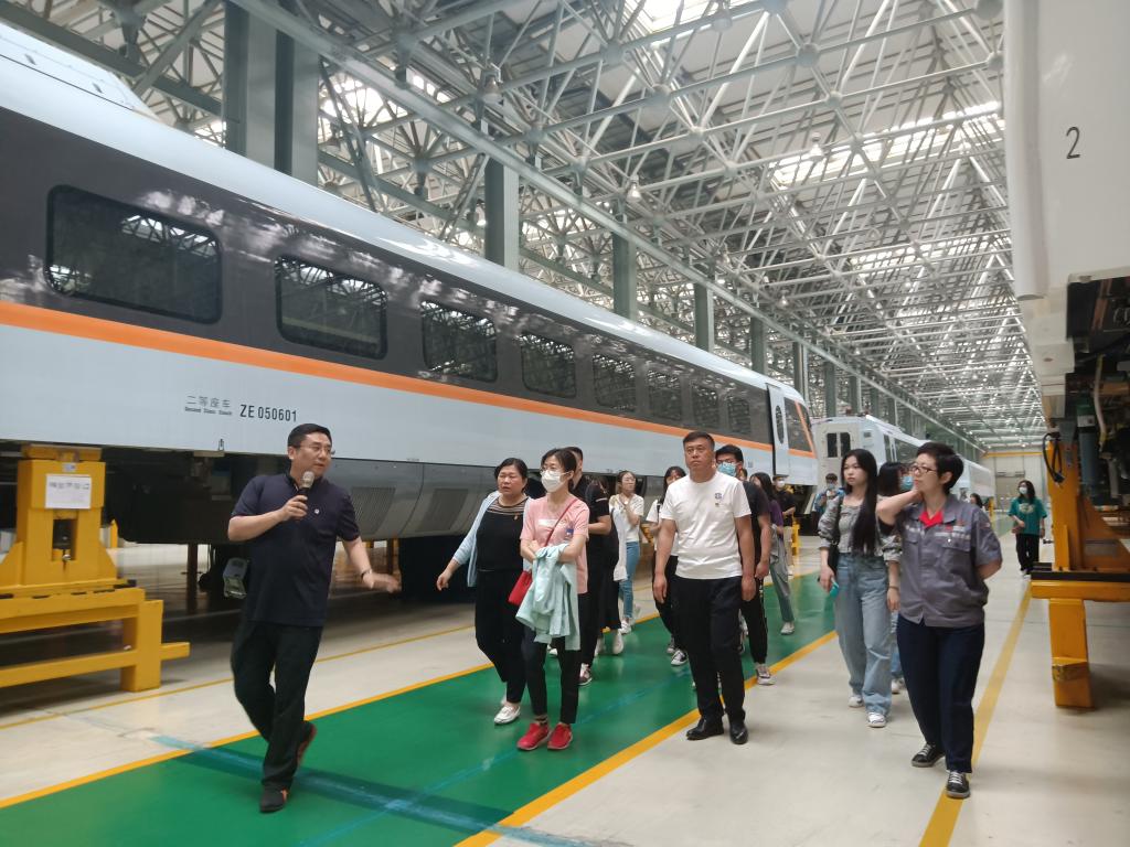 在负责人的带领下,师生们参观了车间和生产线和零部件组装线,对中国高铁的认识又上了一个台阶。看到我国顶尖科技走在世界前沿,大家由衷地感到自豪。