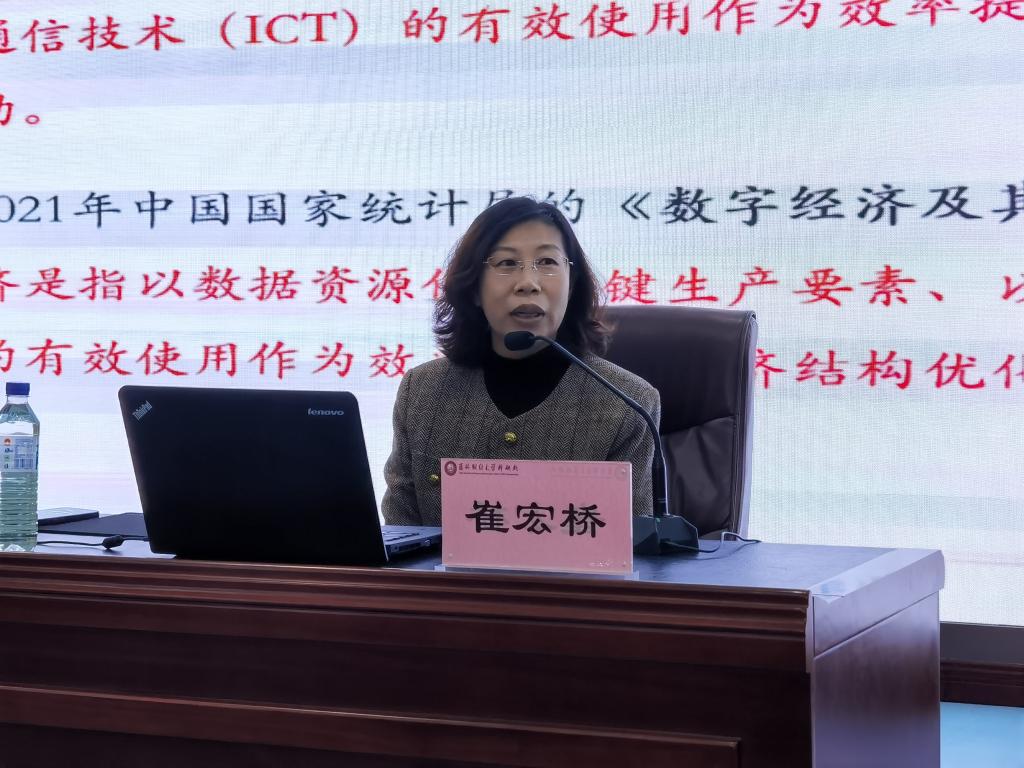 10月18日下午,科研处联合亚泰工商管理学院在第一教学楼1102报告厅举办了第八讲“吉财善水讲坛”,邀请亚泰工商管理学院院长崔宏桥教授做了题为“数字经济与管理创新”的学术报告。本次报告会由亚泰工商管理学院副院长孟祥君主持,学院部分师生参会。