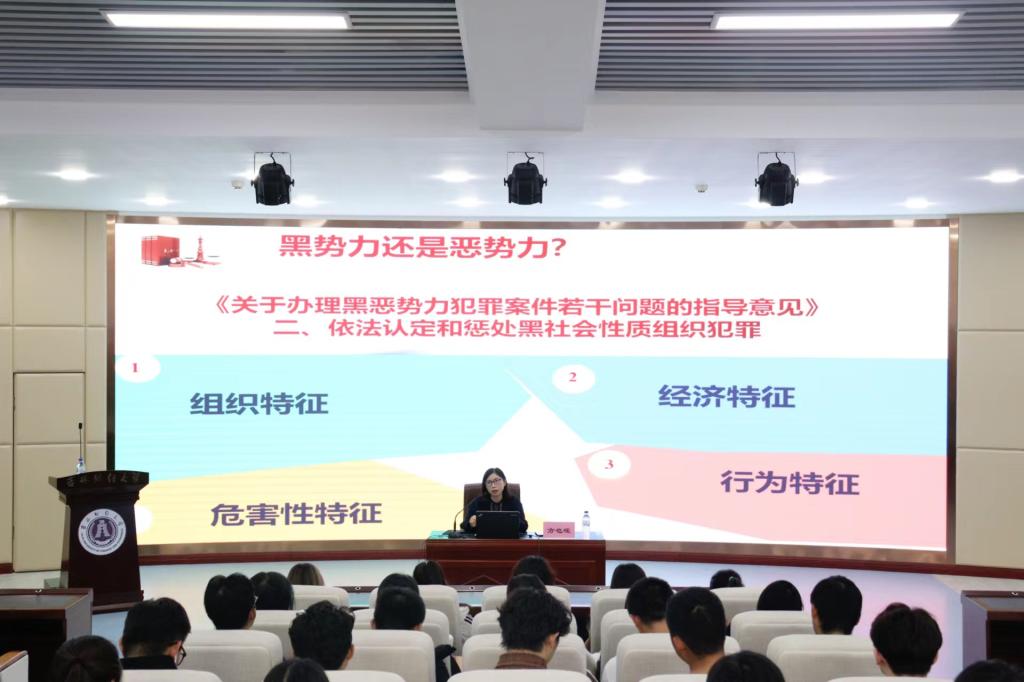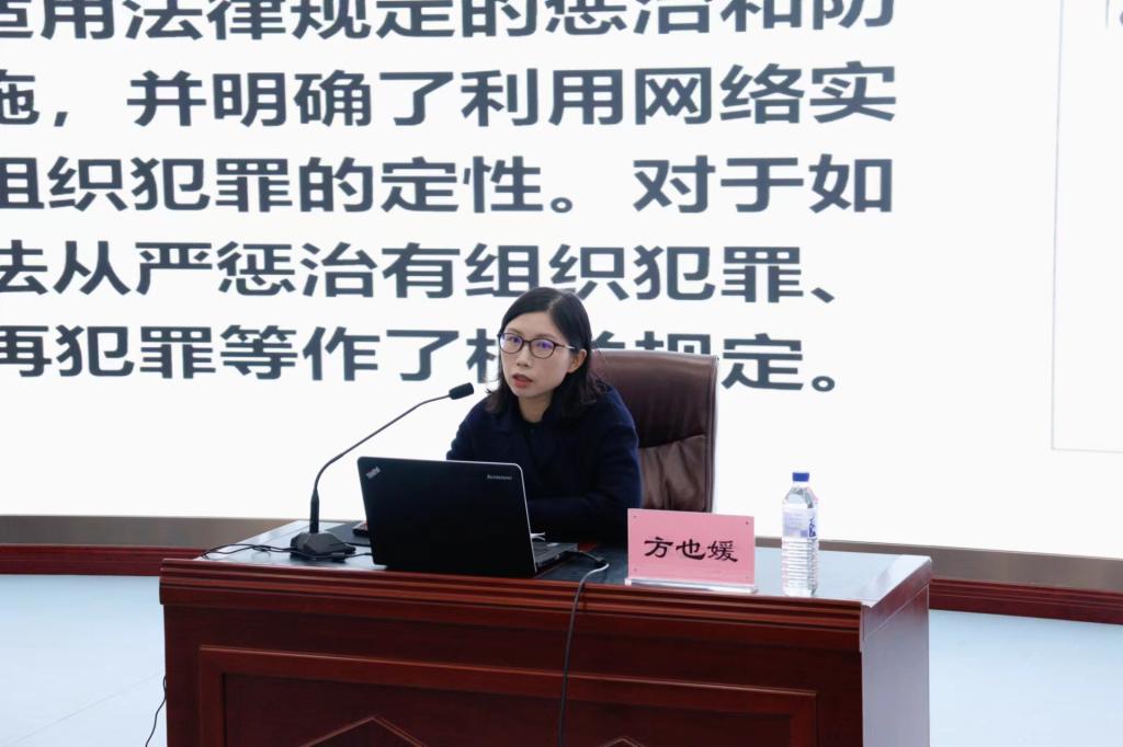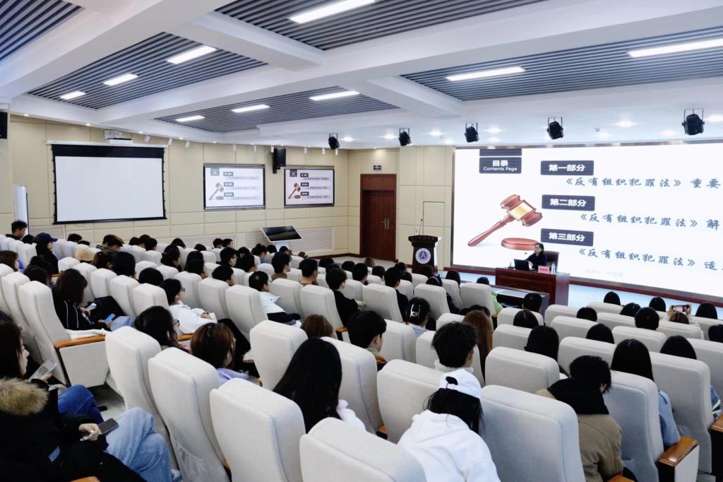 方也媛老师为在场师生们讲述了《反有组织犯罪法》的意义、解读与适用,全面系统的介绍了《反有组织犯罪法》的特征与亮点,在讲座过程中,方老师引用了大量的实务案例,讲座内容深入浅出,既具有较强的理论深度和实用性又不失趣味性。通过方老师的讲座,在场师生们更加深入地了解了我们国家打击恶黑犯罪的力度与决心,引发了同学们对于《反有组织犯罪法》、《刑法》、《刑事诉讼法》的学习热情与研究兴趣,并强化了自身的法治意识。讲座反响热烈,获得了在场师生的好评。