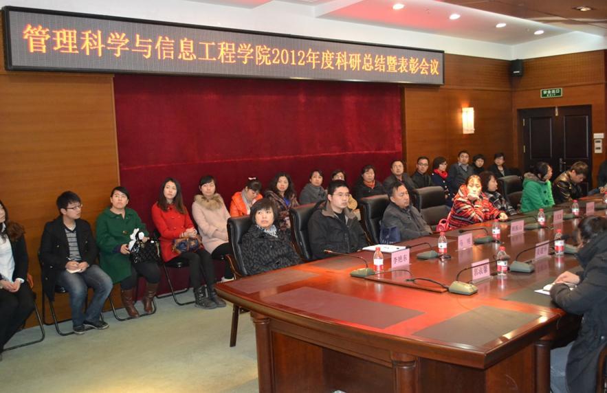 4月2日,管理科学与信息工程学院在图书馆1006会议室召开2012年度科研总结暨表彰会议。院长王丽敏,党委书记谷连辉,副院长于卓熙、姜建华、郭淑馨,党委副书记丛彪,各系部主任以及学院全体教师和全体研究生参加了本次会议,学校科研处处长王怡应邀出席会议。会议由管理科学与信息工程副院长于卓熙主持。