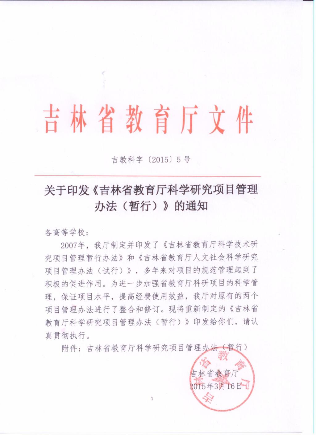 2016年吉林省高校科技与社科“十三五”科研规划项目在学校初审推荐的基础上,通过专家网上盲审、现场答辩评审,以及省级教育和财政部门审核复议,经研究获得批准立项,所需项目经费将由省财政厅按照部门预算拨付至Beat365,目前合同签署工作开始进行,立项的项目名单及项目负责人见附件。